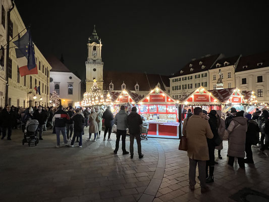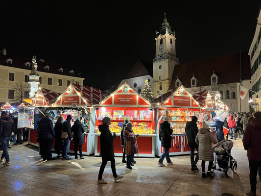 Weihnachtszauber. Nur einen Katzensprung von Wien entfernt, lockt die festlich beleuchtete slowakische Hauptstadt Bratislava mit dem traditionellen Weihnachtsmarkt am Hauptplatz Hlavné námestie und dem Weihnachtsmarkt in der Fussgängerzone am Hviezdoslavovo Namestie. Von 22. November 2025 bis 31. Dezember 2025 bieten die festlich geschmückten Stände traditionelles Kunsthandwerk sowie herzhafte und süße Köstlichkeiten wie Lokse (Kartoffelfladen), Strudel und Glühwein.