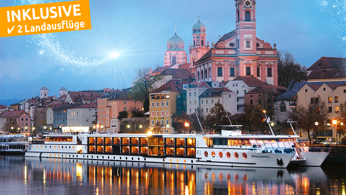 4 Tage Flusskreuzfahrt mit dem Luxus-Liner 4*+MS Primadonna auf der Donau zu den Adventmärkten in Linz und Passau ab/bis Wien: Die Adventmärkte am Linzer Haupt- und Pfarrplatz sowie am Domplatz in Passau zählen zu den schönsten an der Donau. Eine Fahrt mit der steilsten Schienenbahn Europas auf den Pöstlingberg, der Passauer Dom und der Besuch des Adventdorfes in Tulln sind die Attraktionen dieser Reise. Diese Kreuzfahrt findet zu folgendem Termin statt: 14. - 17. Dezember 2025. Im Preis inkludiert sind die Vollpension und ein Glühweinempfang, Orgelkonzert in Linz, die Pöstlingbergbahnfahrt und ein Stadtrundgang in Passau.