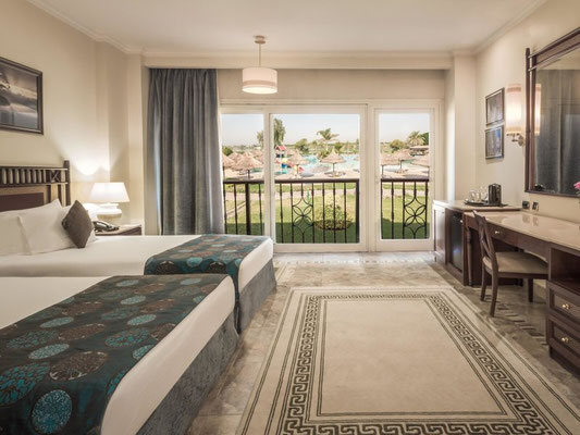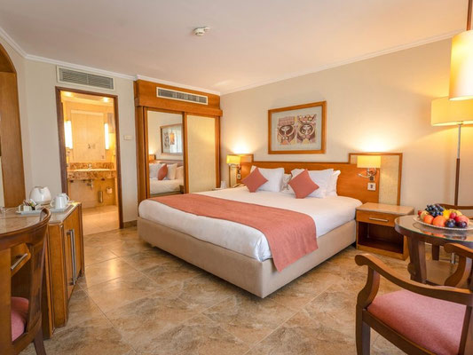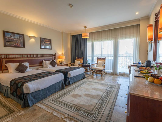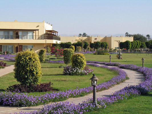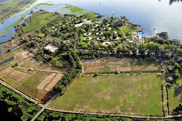 Lage: Das Luxushotel befindet sich direkt am Nil auf Crocodile Island, nur 4 km südlich von Luxor Stadt entfernt, dass Sie mit Hilfe eines Shuttle Bus Service erreichen können. Der internationale Flughafen von Luxor ist ca. 15 km vom Golfhotel entfernt. Bis zum Stadtzentrum und zum Bahnhof von Luxor Stadt sind es ca. 4 km. Sehenswürdigkeiten wie der Karnak Tempel, The West Bank und das Tal der Könige sind 10-18 km vom Club Resort entfernt.