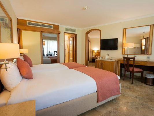 Ausstattung: Bungalowanlage mit insgesamt 332 Zimmern. Zur Einrichtung gehört eine Wechselstube. Per WiFi erhalten die Gäste in den öffentlichen Bereichen Zugang zum Internet. Ein Supermarkt und einige weitere Geschäfte bieten die Möglichkeit zum entspannten Bummeln. Ein schöner Garten und ein Spielplatz gehören zum Gelände der Unterbringung. Zu den weiteren Einrichtungen des Komplexes zählen ein Spielzimmer und eine Bibliothek. Wer mit dem eigenen Fahrzeug anreist, kann es auf dem Parkplatz der Anlage abstellen. Zu den zur Verfügung stehenden Angeboten gehören ein kostenpflichtiger Babysitterservice, eine Kinderbetreuung, medizinische Betreuung, ein Zimmerservice, ein Weckdienst, ein Wäscheservice und ein Friseur. Ein Shuttleservice wird zudem geboten.