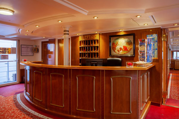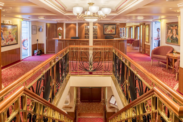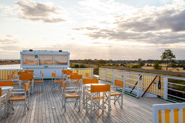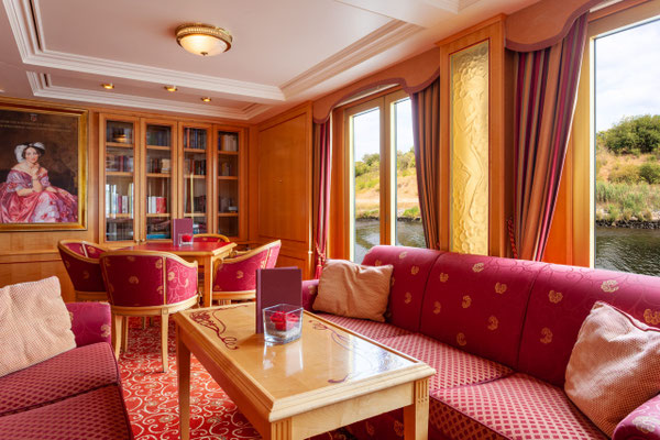 Die komfortablen Kabinen und die mit viel Liebe zum Detail eingerichteten öffentlichen Bereiche lassen sofort ein Wohlgefühl aufkommen. Kulinarische Freuden warten im gemütlichen Panorama-Restaurant. Die zauberhaften Flusslandschaften lassen sich bestens vom Sonnendeck aus genießen. Abends lädt der Salon mit Pianomusik zum Ausklang ein. Gratis WLAN nach Verfügbarkeit. Rauchen ist nur in den dafür vorgesehenen Bereichen auf dem Sonnendeck erlaubt. Bitte beachten Sie, dass das Schiff über keinen Lift verfügt und alle Decks nur über die Treppe erreichbar sind.