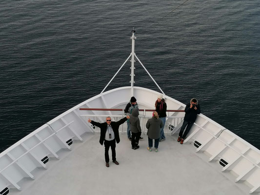 Die Einrichtung ist inspiriert vom Meer, dem Himmel, den Bergen und Gletschern, unsere Gerichte sind lokale Spezialitäten der Städte und Dörfer, die Sie vom Schiff aus sehen können.