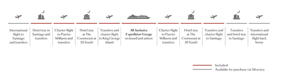 Mit privaten Charterflügen geht es von Santiago nach Puerto Williams. Starten Sie in Puerto Williams und segeln Sie nach Südgeorgien, um diese wunderschöne Region zu erkunden. Befahren Sie die aufregende Drake-Passage und entdecken Sie Elephant Island. Entdecken Sie die Antarktische Halbinsel mit ihren hoch aufragenden Bergen und beeindruckenden Eisbergen und Gletschern. Erkunden Sie die Südlichen Shetlandinseln und halten Sie Ausschau nach Pinguinen. Eine Übernachtung in Puerto Williams rundet Ihr Abenteuer ab.