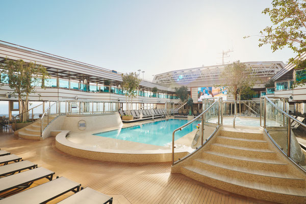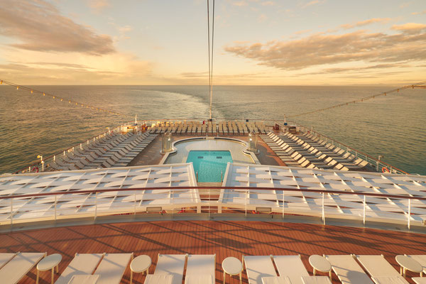 Die Costa Deliziosa ist all das: mit einer Einrichtung und Dekoration aus Muranoglas, Außendecks mit Blumennamen, eleganten und hellen Kabinen und Verkostungen von edlen Weinen in der vielfältigen Weinbar.
